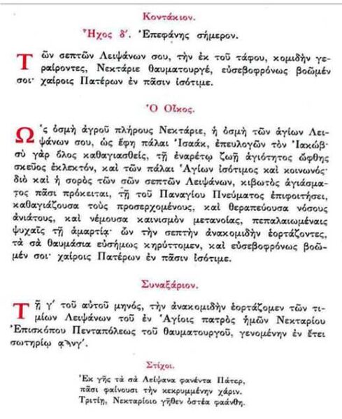 Τῶν σεπτῶν σου Λειψάνων Ἱεράρχα Νεκτάριε,