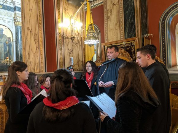 Τους ύμνους έψαλε και απέδωσε περίφημα η Μεικτή Χορωδία της Ιεράς Μητροπόλεως, που απαρτίζεται από νέους και νέες, υπό την καθοδήγηση και την διδασκαλία του Πρωτοψάλτου του Μητροπολιτικού Ναού κ. Βασιλείου Γεωργαρά.