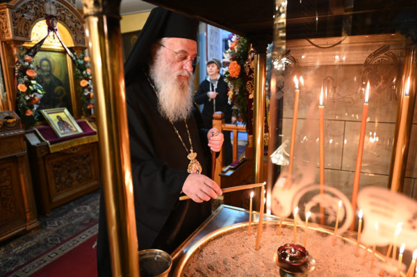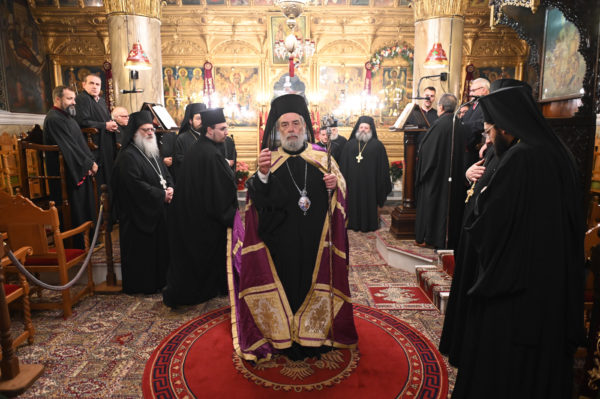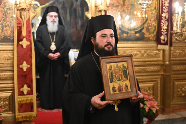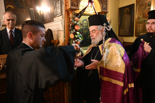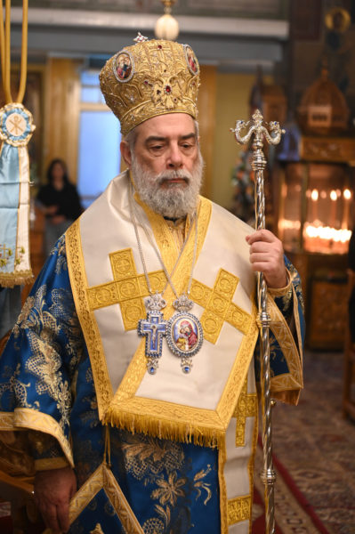 Στη συνέχεια, ευχαρίστησε εκ βάθους καρδίας τον Σεβ. Μητροπολίτη Λεοντουπόλεως κ. Γαβριήλ για την τιμητική του παρουσία στον εορτασμό και του ζήτησε να μεταφέρει τις ευχαριστίες του, εκζητώντας τις ευχές κι ευλογίες του Μακαριωτάτου Πατριάρχου Αλεξανδρείας και πάσης Αφρικής κ.