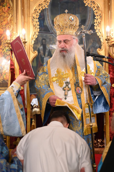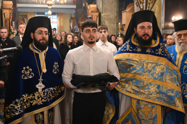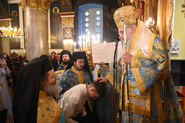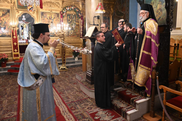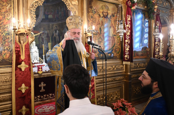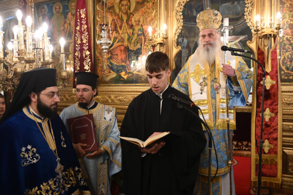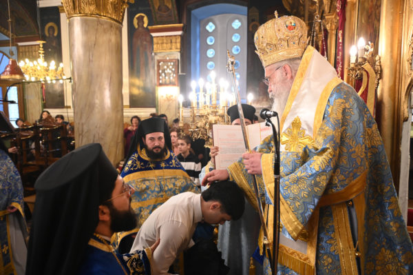 Προ της απολύσεως ο Μητροπολίτης κ. Επιφάνιος χειροθέτησε σε Αναγνώστες, δύο μαθητές της Γ΄Λυκείου από το Λεβίδι, τον Ιωάννη Καμπέλο και τον Σιέμπο Νικόλαο, οι οποίοι με ζήλο διακονούν την ενορία και είναι μαθητές του Παραρτήματος της Σχολής Βυζαντινής Μουσικής της Μητροπόλεως.