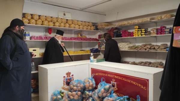 Εν όψει της εορτής της λαμπροφόρου Αναστάσεως του Κυρίου μας, το Σάββατο 22 Απριλίου 2021, με πρωτοστάτη του Φιλανθρωπικού Προγράμματος της Ιεράς Μητροπόλεως Μαντινείας και Κυνουρίας «ΤΟ ΚΑΛΑΘΙ ΤΟΥ ΠΤΩΧΟΥ ΑΔΕΛΦΟΥ», τον Σεβασμιώτατο Μητροπολίτη Μαντινείας και Κυνουρίας κ.κ. ΑΛΕΞΑΝΔΡΟΝ, παρεδόθησαν στους υπευθύνους των Ενοριών της Τριπόλεως, της Κυνουρίας και των Φιλανθρωπικών Ιδρυμάτων της Μητροπόλεώς δέματα περιέχοντα τρόφιμα, γλυκίσματα, φρούτα και κρέας, για τις ημέρες του Πάσχα για να δοθούν στις άπορες οικογένειες των ως άνω Ενοριών και Φιλανθρωπικών Ιδρυμάτων που αντιμετωπίζουν πρόβλημα επιβίωσης, λόγω της οικονομικής κρίσης.