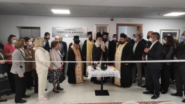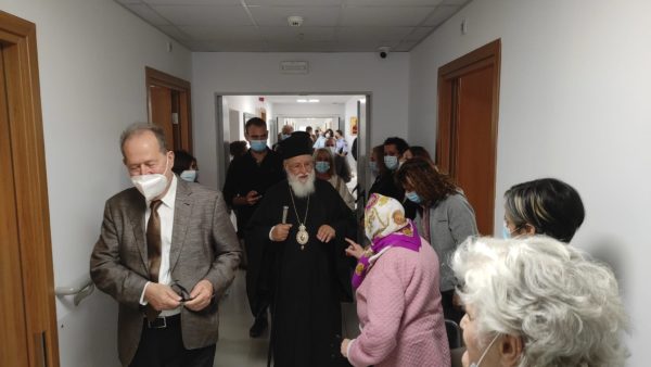 Ακολούθησε ο Αγιασμός στη νέα πτέρυγα, όπου ο Σεβασμιώτατος μίλησε για την πορεία του Ιδρύματος και τους μεγάλους δωρητές, που το στήριξαν και στηρίζουν.