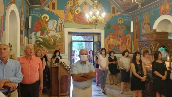 Στις Ιερές Ακολουθίας συμμετείχαν πλήθος κόσμου μεταξύ και οι Αστυνομικοί της Αρκαδίας οι οποίοι τηρούσαν τα μέτρα προστασίας κατά του κορωνοϊού.