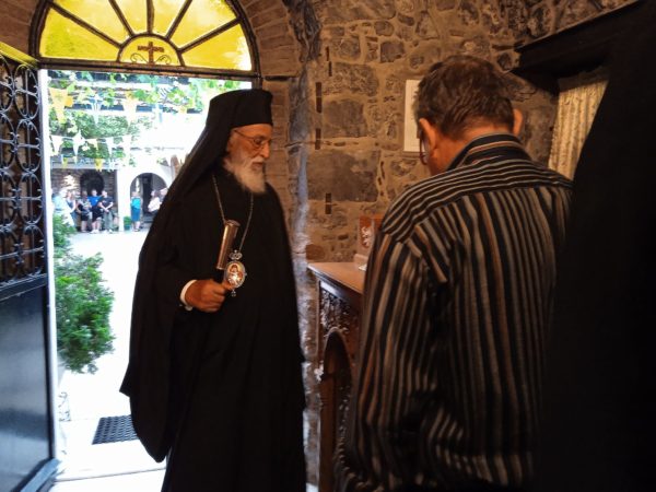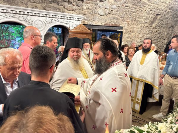 Στο τέλος της Ακολουθίας ο Σεβασμιώτατος, αφού μίλησε σχετικά, αναφερόμενος στο πρόσωπο της Παναγίας, τίμησε με το Οφίκκιο του Αρχιμανδρίτου τον αδελφό της Μονής Ιερομόναχο Προκόπιο Δαμαλά. Στην Ακολουθία μετείχαν Ιερομόναχοι, Ιερείς και Μοναχοί από Μονές και ενορίες της περιοχής και ευλαβείς προσκυνητές της Μονής οι οποίοι ευχήθηκαν στον τιμηθέντα το Άξιος.