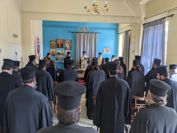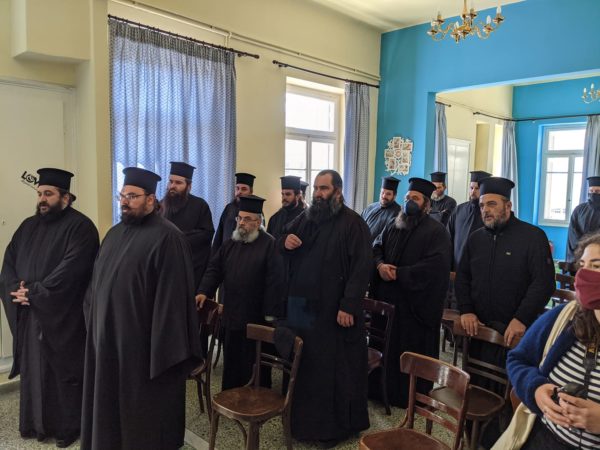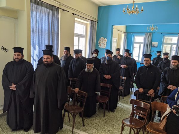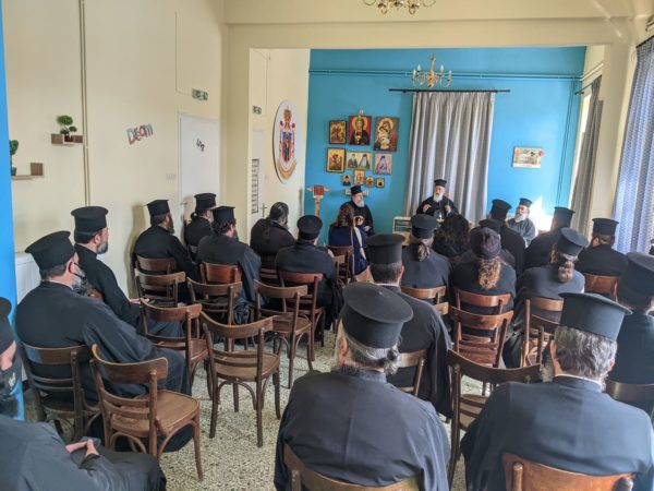 Στη συνέχεια, τον λόγο έλαβε ο Πανοσ. Αρχιμανδρίτης Θεολόγος Αλεξανδράκης, αναπληρωτής διευθυντής του Ι.Π.Ε., ο οποίος, αφού μετέφερε τις ευχές του Μακαριωτάτου Αρχιεπισκόπου, ευχαρίστησε τον Σεβασμιώτατο για τη συνεργασία με το Ι.Π.Ε. και τη δυνατότητα που προσφέρει στους κληρικούς, μέσω της διά βίου μάθησης και εκπαίδευσης, να επιμορφωθούν και να ενισχυθούν στην αντιμετώπιση των πρακτικών θεμάτων της ενοριακής ζωής.