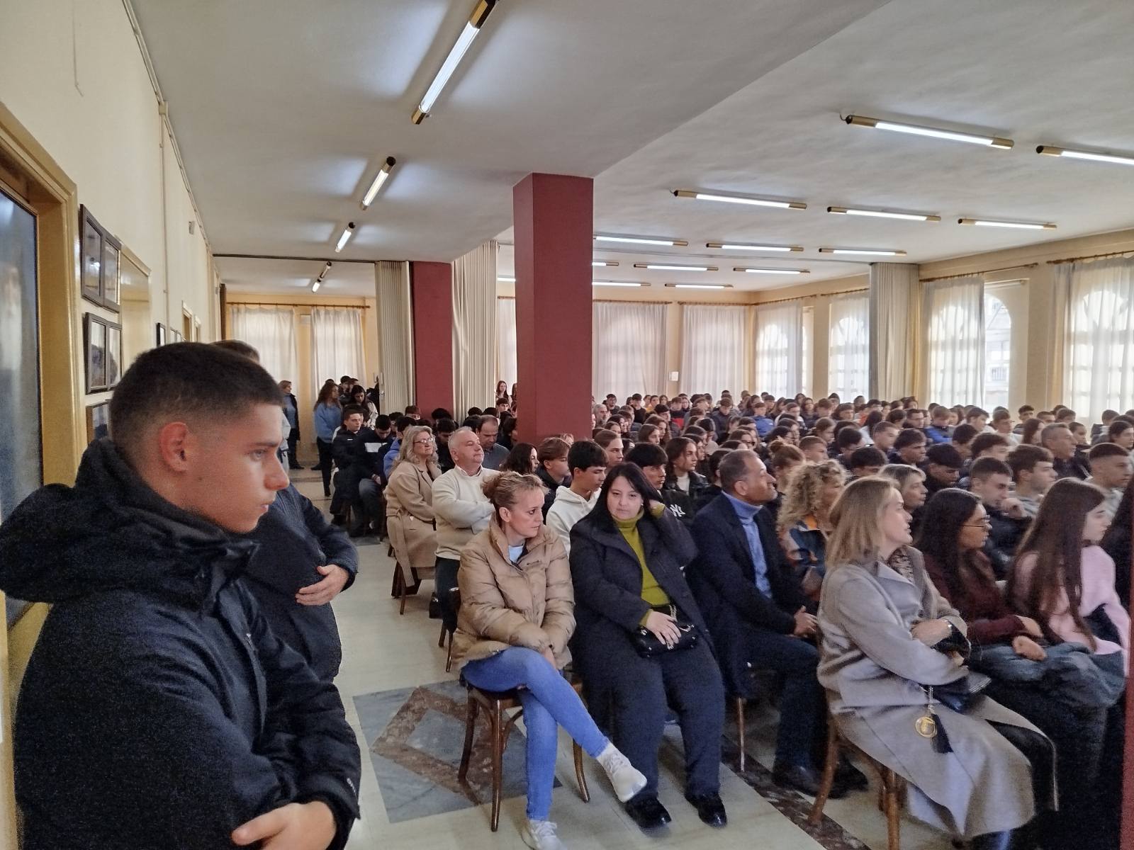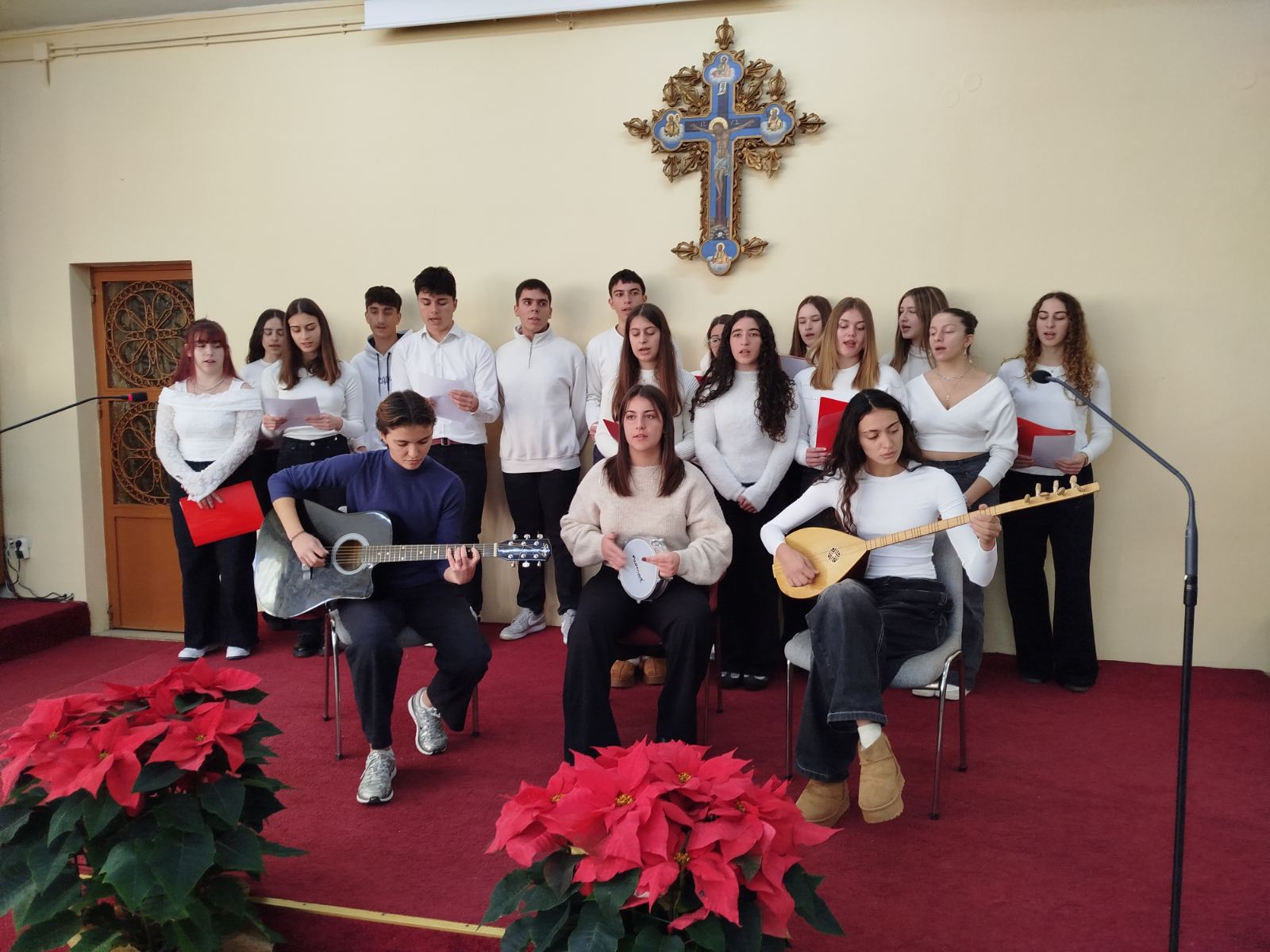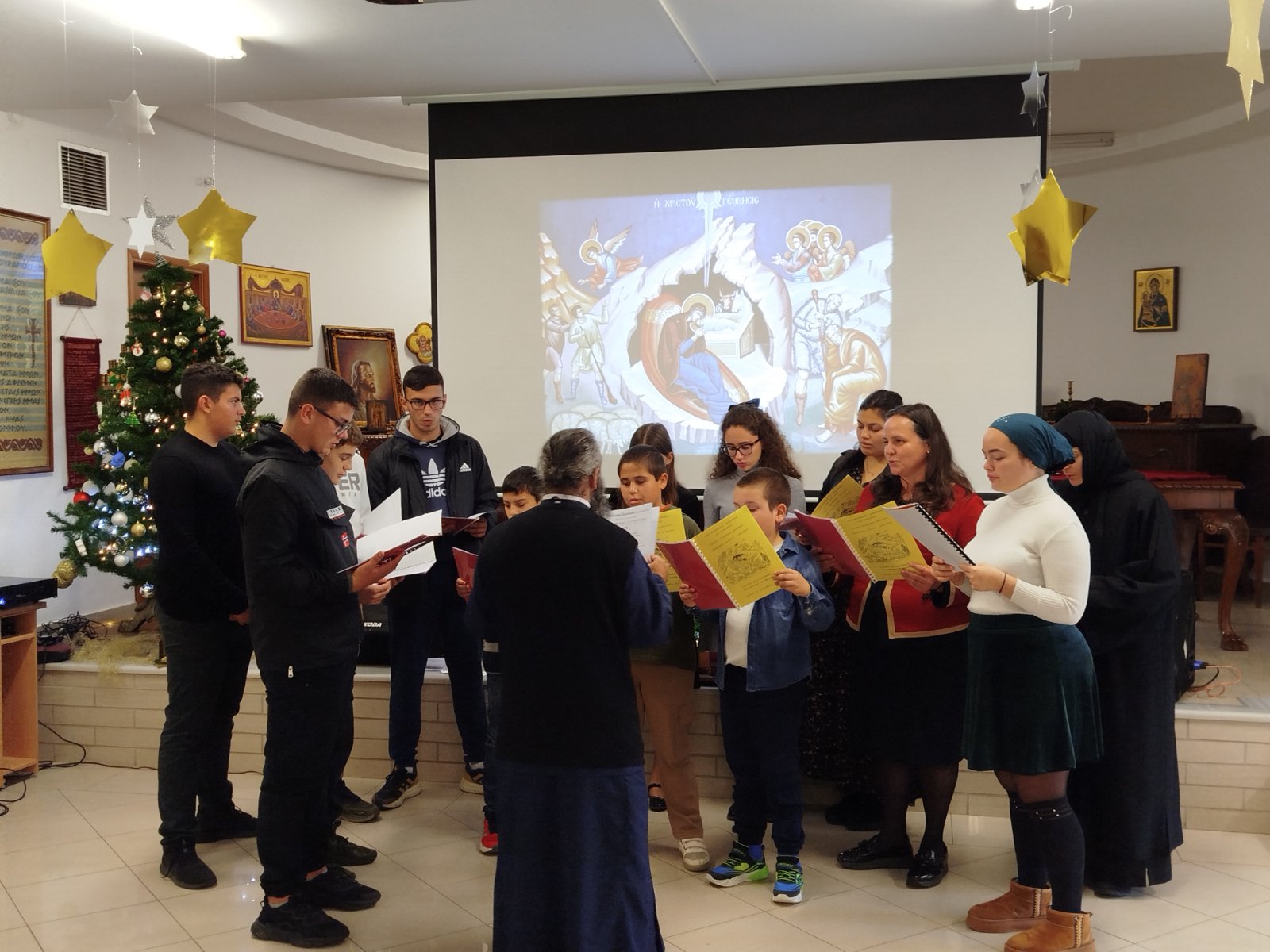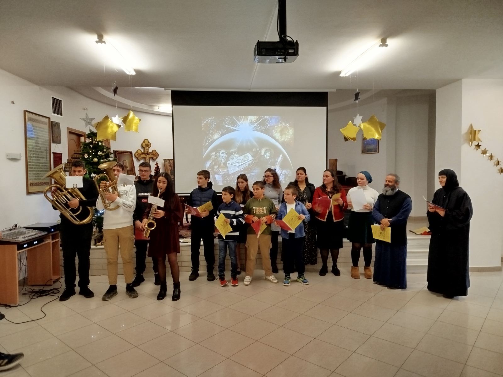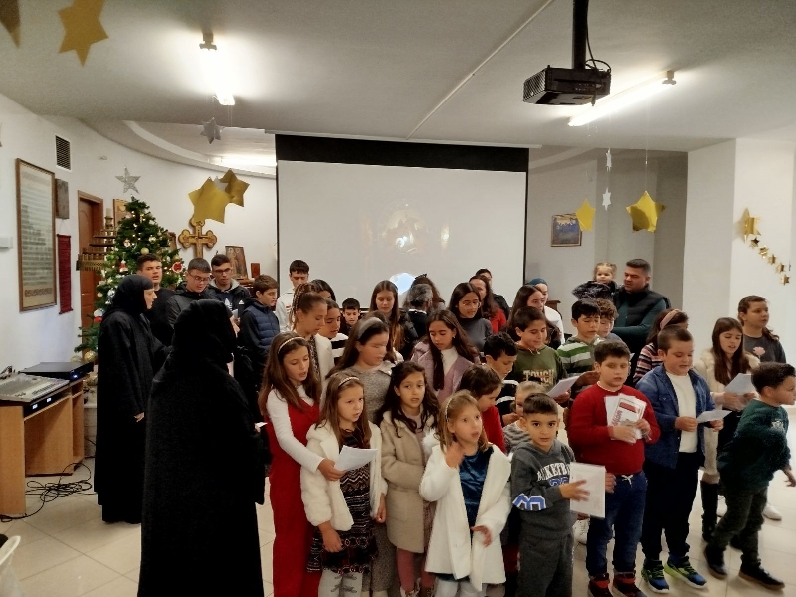Το πρωί, ο Σεβασμιώτατος δέχθηκε στο Πνευματικό Κέντρο του Ιερού Ναού Αγίας Βαρβάρας Τρίπολης τους μαθητές του 4ου Γενικού Λυκείου Τρίπολης, στους οποίους μίλησε για το μέγα γεγονός της ενανθρωπήσεως του Κυρίου μας Ιησού Χριστού και το νόημα της εορτής των Χριστουγέννων.