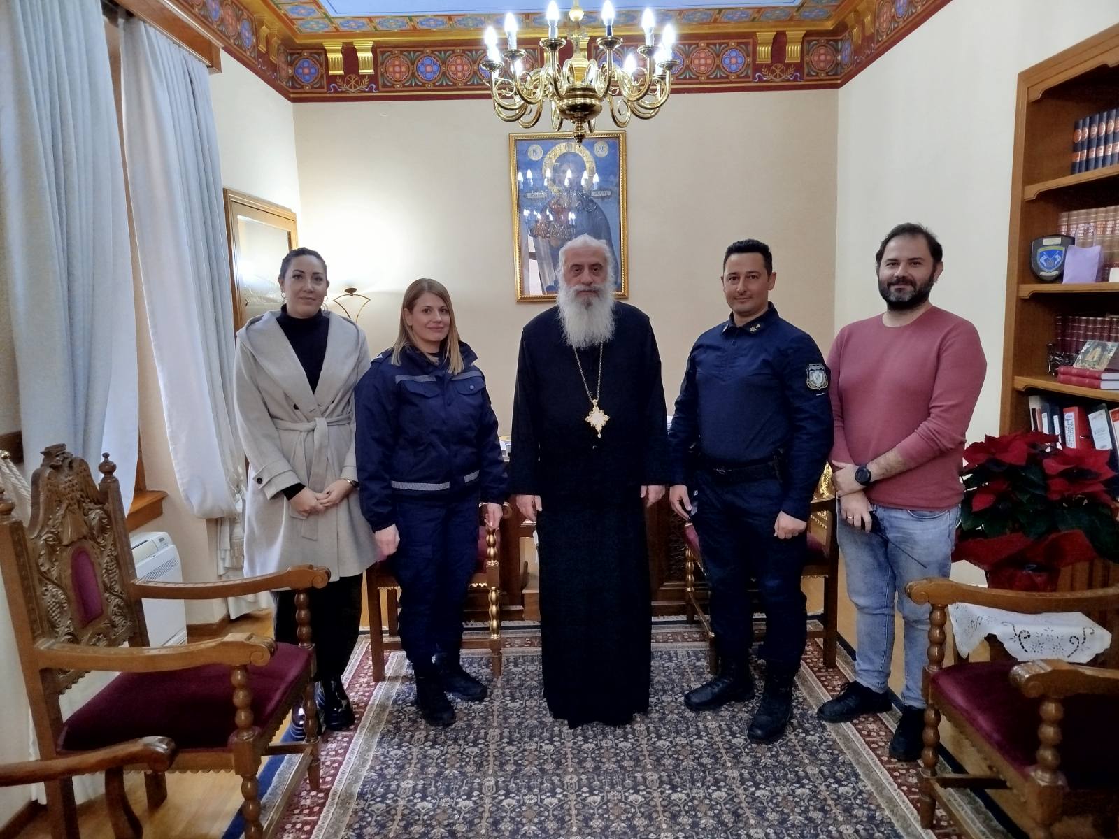 Στη συνέχεια, στο Γραφείο του, ο Σεβασμιώτατος δέχθηκε εθιμοτυπικές επισκέψεις από τον Αστυνομικό Διευθυντή Αρκαδίας κ. Δημήτριο Ροΐδη, τον νέο Πρόεδρο του Δικηγορικού Συλλόγου Αρκαδίας κ. Γιαννίκο, μαθητές του Μουσικού Γυμνασίου – Λυκείου Τρίπολης, καθώς και αστυνομικούς της Υποδιεύθυνσης Αρκαδίας, οι οποίοι προσέφεραν τρόφιμα για την ενίσχυση του φιλανθρωπικού έργου της ενορίας της Αγίας Βαρβάρας Τρίπολης.