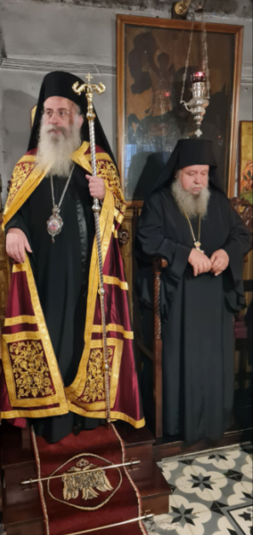 Τον Σεβασμιώτατο Μητροπολίτη υποδέχθηκαν η Οσιολογιωτάτη Καθηγουμένη Γερόντισσα Αγνή ως επικεφαλής της αδελφότητας της Ιεράς Μονής.