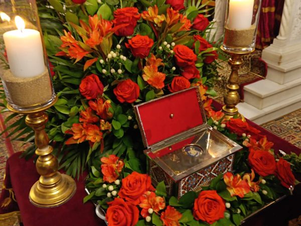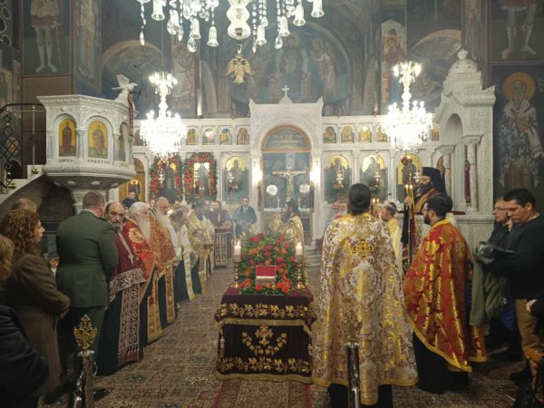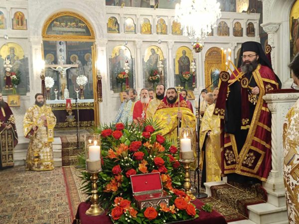 Ο Θεοφιλέστατος ευχήθηκε στους πιστούς την χάρη της Αγίας και μετέφερε τις ευχές του Σεβασμιωτάτου Μητροπολίτου Μαντινείας και Κυνουρίας κ. Αλεξάνδρου, τον οποίο εκπροσώπησε.