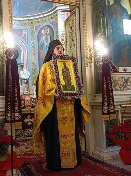 Τον θείο λόγο κήρυξε ο Οσιολογιώτατος Ιερομόναχος Ιάκωβος Κωνσταντίνου, Εφημέριος του Ιερού Ναού Αγίου Δημητρίου Τριπόλεως, αναφερόμενος στον εορτάζοντα άγιο.