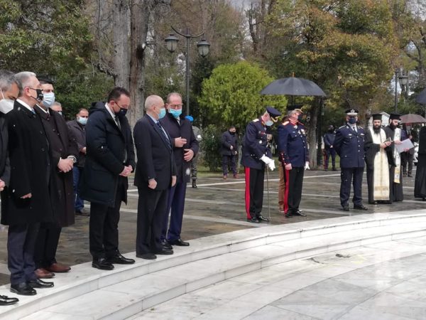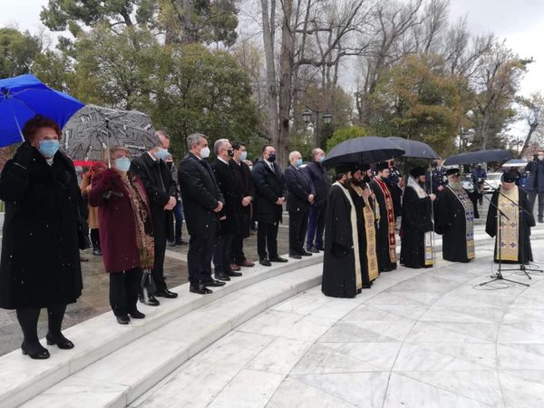 Ακολούθως, τελέσθηκε Επιμνημόσυνος Δέησις στο Μνημείο των Αρχιερέων και Προκρίτων στην Πλατεία Άρεως υπό του Θεοφιλεστάτου Επισκόπου Τεγέας κ. Θεοκλήτου και κατετέθησαν στέφανοι υπό των ως άνω επισήμων.