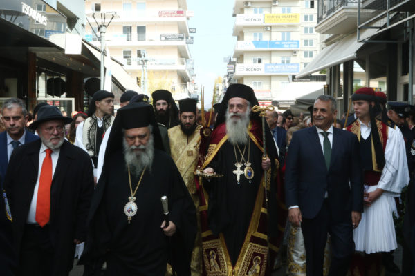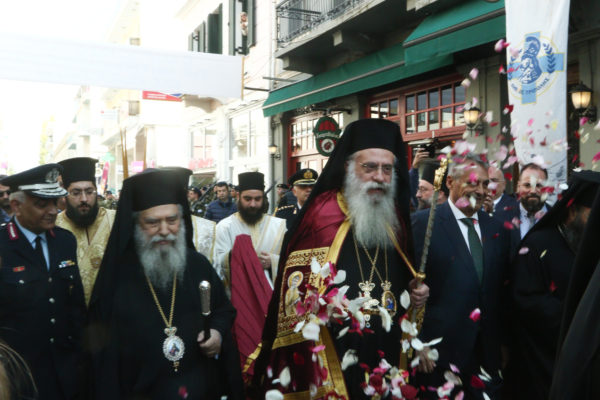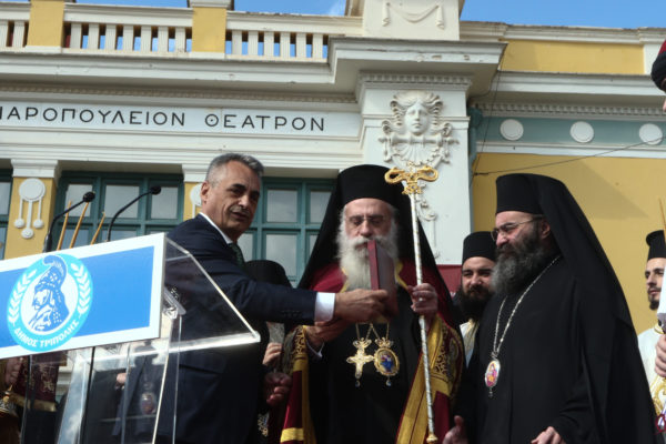 Εκ μέρους του Δημοτικού Συμβουλίου ο Δήμαρχος κ. Τζιούμης επέδωσε στη συνέχεια ένα συμβολικό δώρο για την ημέρα της Ενθρόνισης. Εν συνεχεία υπό τον ήχο των κωδωνοκρουσιών και της μπάντας της 4ης Μεραρχίας Πεζικού “Πελοπόννησος”, σε μια ιδιαίτερα συμβολική πομπή, ο νέος Μητροπολίτης μετέβη στον Ιερό Ναό του Αγίου Βασιλείου Τρίπολης, όπου πραγματοποιείται η τελετή Ενθρόνισης, παρουσία του Αρχιεπισκόπου κ.κ. Ιερωνύμου.