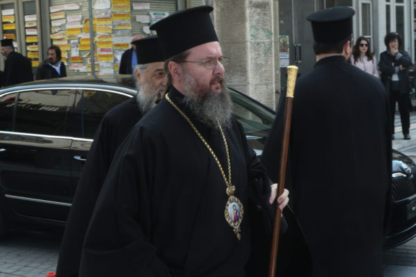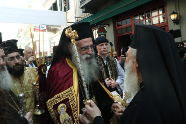 Εκ μέρους του ιερού κλήρου και των μοναστικών αδελφοτήτων τον νέο Ποιμενάρχη καλωσόρισε ο Πρωτοσύγκελλος της Μητροπόλεως, Θεοφιλέστατος Επίσκοπος Τεγέας κ. Θεόκλητος. Ο Επίσκοπος κ. Θεόκλητος προσέφερε εκ μέρους του ιερού κλήρου μία ποιμαντορική ράβδο, σύμβολο της Αρχιερατικής του διακονίας.