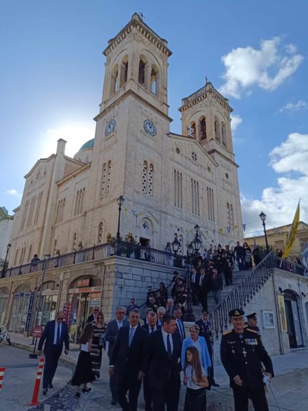 Παρέστησαν εκπρόσωποι του πολιτικού χώρου, οι αρχές της Περιφέρειας και του Δήμου, καθώς και των ενόπλων Δυνάμεων, των Σωμάτων Ασφαλείας και της εκπαιδεύσεως.