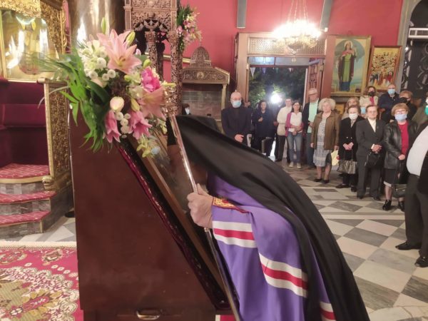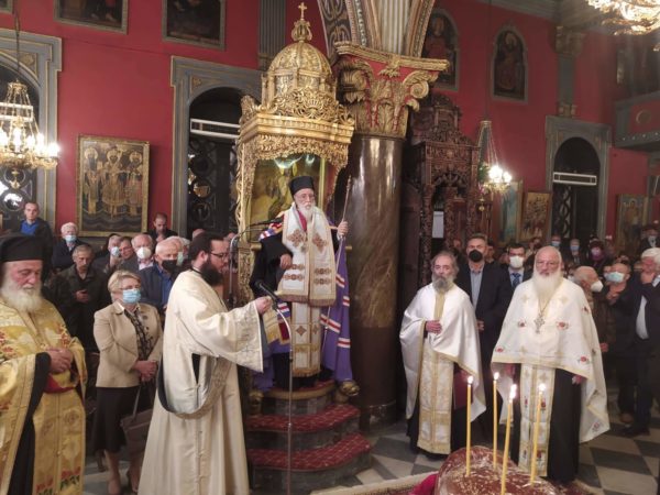 Στην Ακολουθία του Εσπερινού χοροστάτησε ο Σεβασμιώτατος Μητροπολίτης Μαντινείας και Κυνουρίας κ. Αλέξανδρος, πλαισιώμενος από Ιερείς της πόλεως και πλήθος λαού.