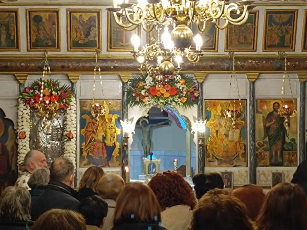 Ανήμερα χοροστάτησε στον Όρθρο και ιερούργησε στον ενοριακό ναό του Αγίου στο Άστρος Κυνουρίας.