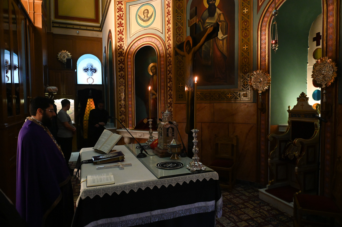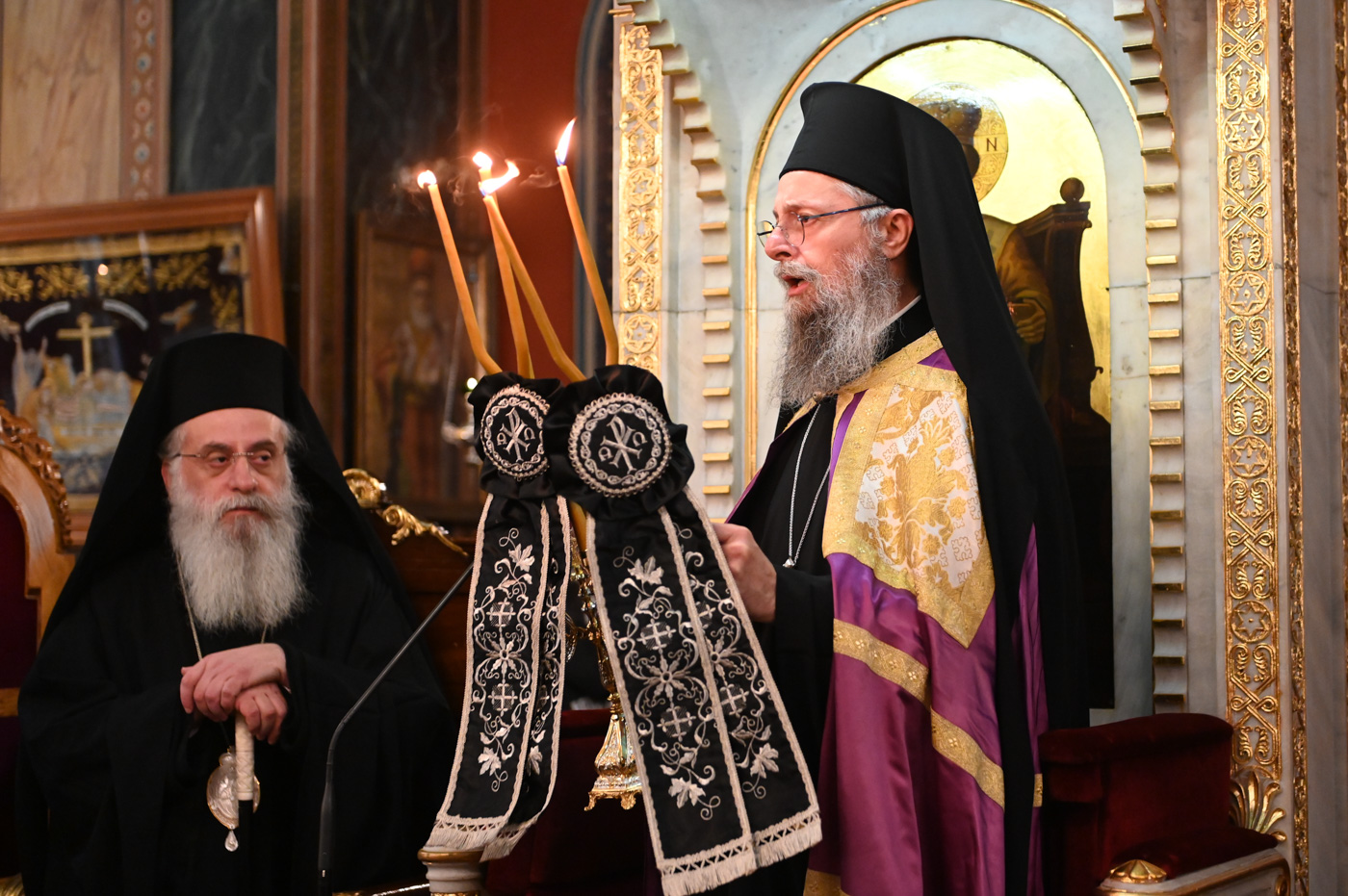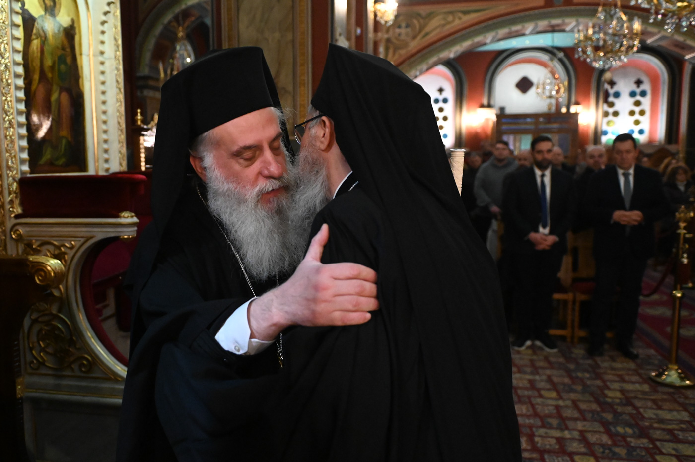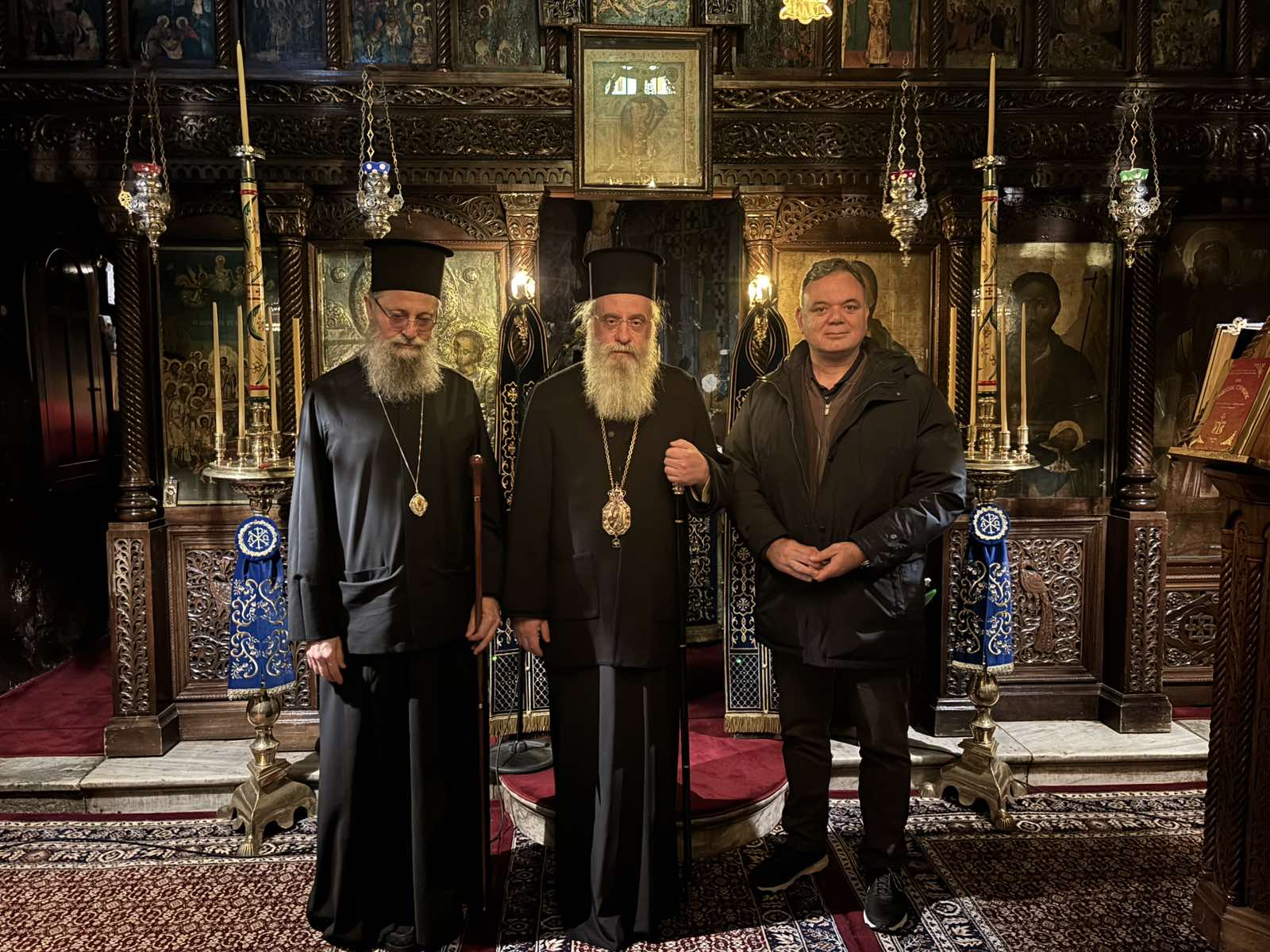 Κατά την διάρκεια του Εσπερινού προσήλθε και ο Θεοφιλ. Επίσκοπος Τεγέας κ. Θεόκλητος, ο οποίος επέστρεψε από την Αρναία, όπου είχε μεταβεί προκειμένου να συμμετάσχει στα ονομαστήρια του Μητροπολίτη Ιερισσού κ. Θεοκλήτου.