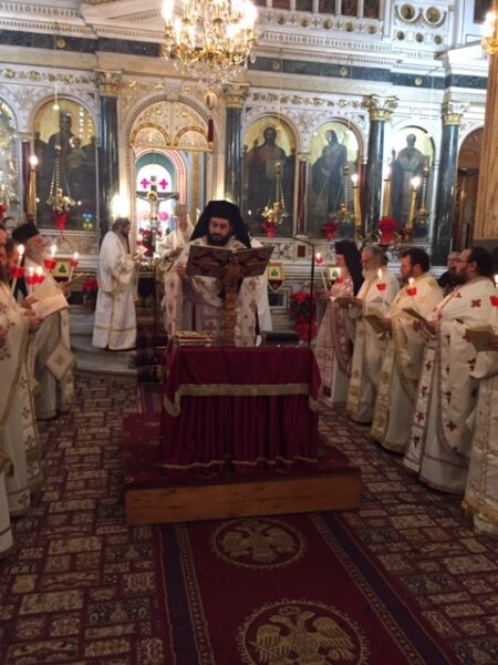 Πλῆθος πιστῶν συμμετεῖχε μέ κατάνυξη στήν ξεχωριστή αὐτή ἀρχαιοπρεπῆ Θεία Λειτουργία, ἡ ὁποία τελεῖται μία φορά τό χρόνο στήν Ἱερά Μητρόπολη.