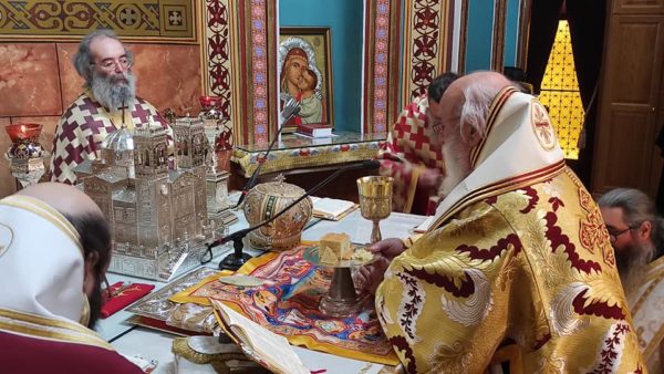 Στον Όρθρο και στη Θεία Λειτουργία προεξήρχε ο Σεβασμιώτατος Μητροπολίτης Μαντινείας και Κυνουρίας κ. Αλέξανδρος, συλλειτουργούντων του Θεοφιλεστάτου Επισκόπου Τεγέας κ. Θεοκλήτου και άλλων κληρικών.