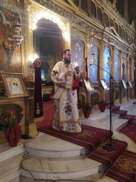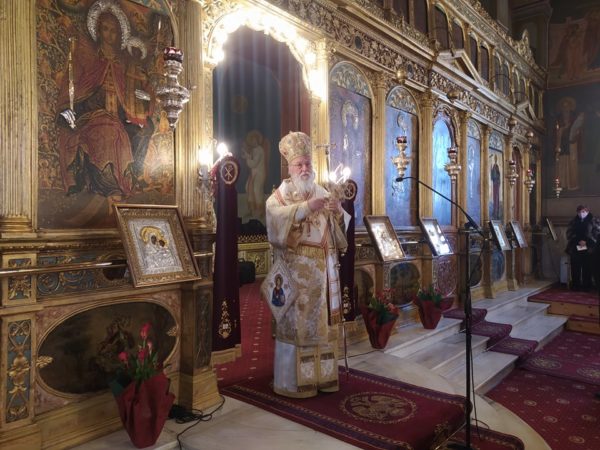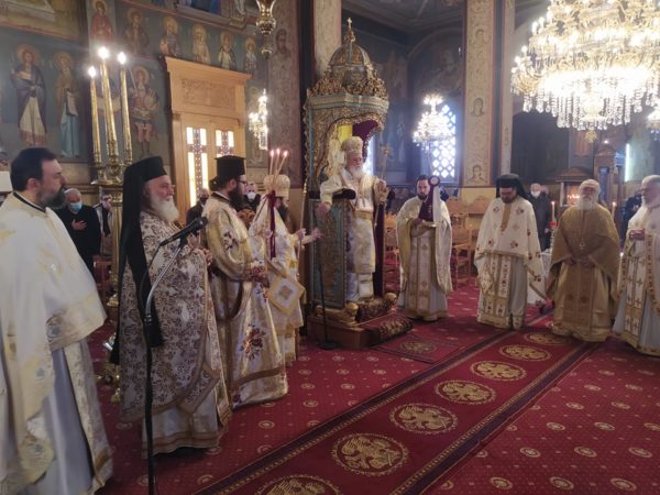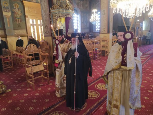 Μετά την Αρχιερατική Θεία Λειτουργία, έγινε η Λιτάνευση των ιερών Εικόνων περίξ του Ναού, με τη συμμετοχή του ιερού Κλήρου, των τοπικών αρχών και του ευσεβούς Λαού της πόλεως, όπου και αναγνώσθηκαν τα σχετικά αποσπάσματα από το Συνοδικόν της αγίας και Οικουμενικής Ζ΄ Συνόδου.