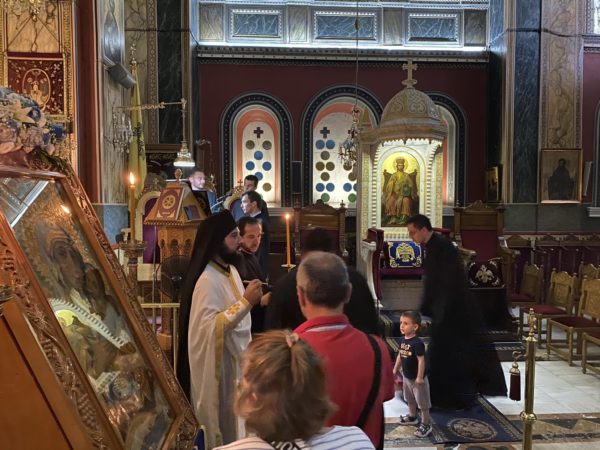 Την παραμονή Δευτέρα 31 Ιουλίου τελέσθηκε ιερά Αγρυπνία από τον Οσιολογιώτατο Ιερομόναχο Προκόπιο Δαμαλά, αδελφό της Ιεράς Μονής Γοργοϋπηκόου Νεστάνης στην οποία λιτανεύθηκε ο Τίμιος Σταυρός επί τη εορτή της Προόδου του, και Αγιασμός.