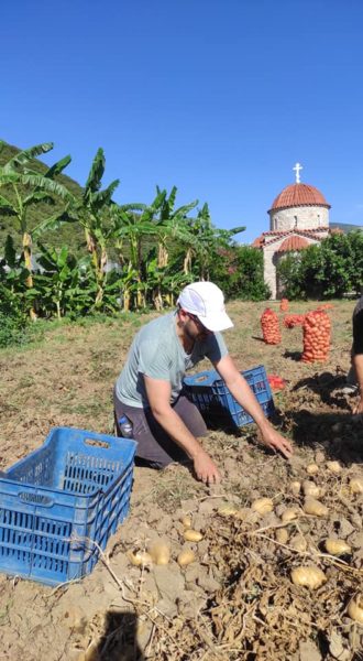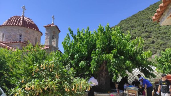 Η συγκομιδή ολοκληρώθηκε με γεύμα στον περίβολο της μικρής Εκκλησίας, που υπάρχει στο κτήμα.