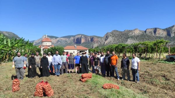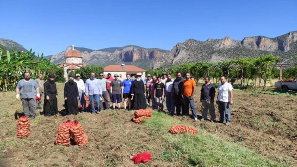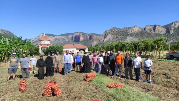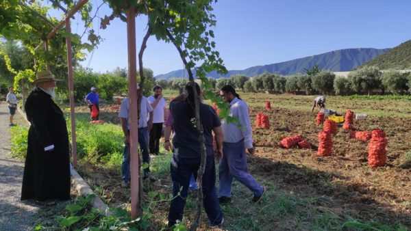 Τη συγκομιδή της πατάτας στα κτήματα της Ιεράς Μονής Αγίου Νικολάου Σίντζας, στην Πλάκα Λεωνιδίου, πραγματοποίησε σήμερα, Παρασκευή 2 Ιουλίου 2021, όπως κάθε χρόνο, ο Σεβασμιώτατος Μητροπολίτης Μαντινείας και Κυνουρίας κ. Αλέξανδρος, με κληρικούς και λαϊκούς εθελοντές.