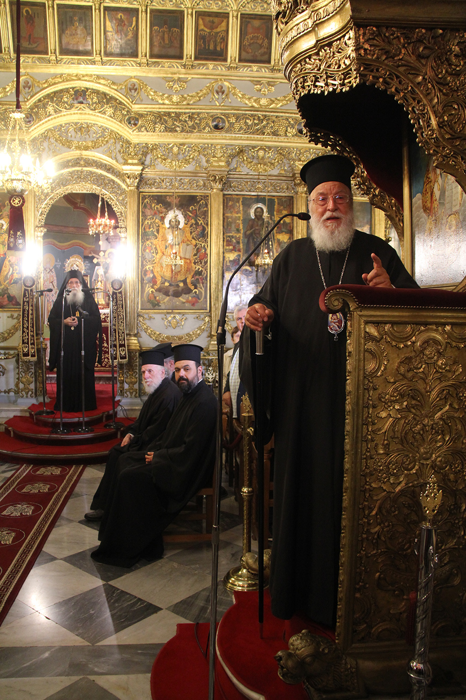 Πριν την έναρξη της ομιλίας του Γέροντος Νεκταρίου, το λόγο πήρε ο Σεβ. Μητροπολίτης Μαντινείας και Κυνουρίας κ.κ. Αλέξανδρος, ο οποίος ευχαρίστησε τον Σεβ. Μητροπολίτη Φωκίδος για την άδεια και ευλογία που έδωσε στον Γέροντα Νεκτάριο για να μεταβεί στην Τρίπολη και εν συνεχεία ευχαρίστησε τον Γέροντα Νεκτάριο μιλώντας εν συντομία για το πνευματικό του έργο και την προσφορά του μέσα στην εκκλησία και τον τίμησε με το μετάλλιο του Αγίου Ωφελίμου Επισκόπου Τεγέας, ο οποίος έλαβε μέρος στην Δ΄ Οικουμενική Σύνοδο.