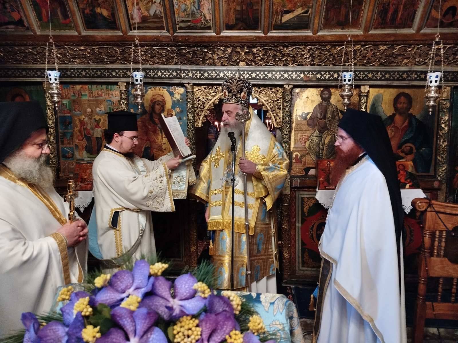 Τον Σεβασμιώτατο υποδέχθηκαν ο Πανοσιολογιώτατος Καθηγούμενος π. Μελχισεδέκ και η τιμία συνοδεία αυτού.
