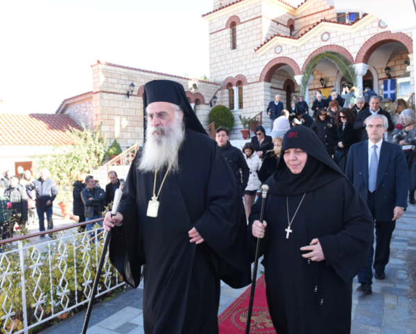 Ο Σεβασμιώτατος με την σειρά του ευχαρίστησε την Γερόντισσα για την υποδοχή, αλλά και για την εκκλησιολογικά και θεολογικά προσφώνησή της προς το πρόσωπό του.