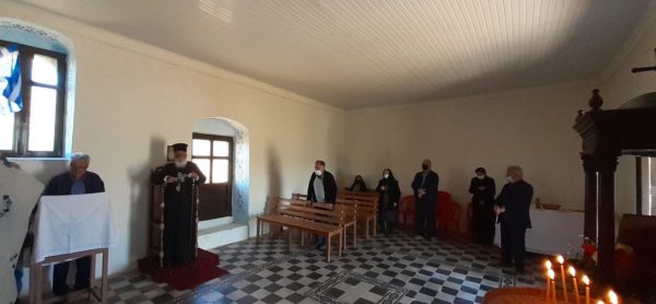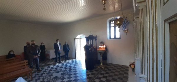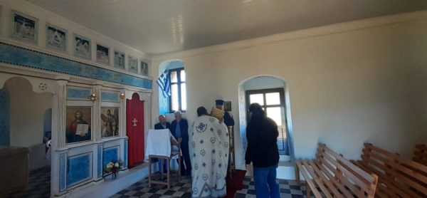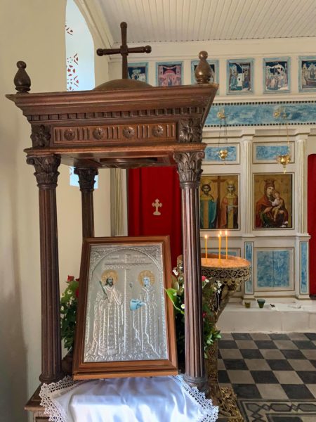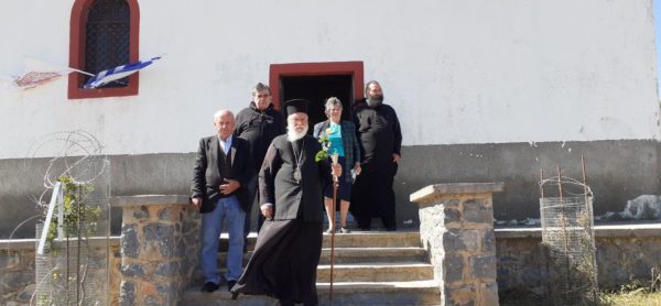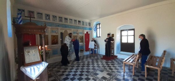Ο Σεβασμιώτατος ομίλησε στους συγχωριανούς του για τους εορταζομένους Αγίους και την ιστορία του Ναού.