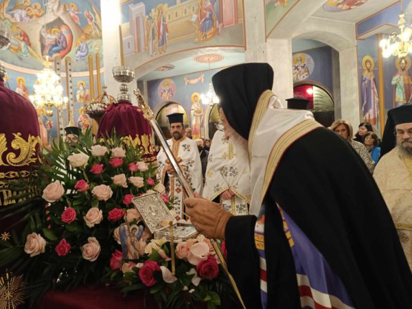 Στην υποδοχή και στο Μέγα Πανηγυρικό Εσπερινό χοροστάτησε ο Σεβασμιώτατος Μητροπολίτης Μαντινείας και Κυνουρίας κ. Αλέξανδρος, ο οποίος ευλόγησε τη σύναξη των πιστών, που κατέκλυσαν τον πανηγυρίζοντα Ιερό Ναό.