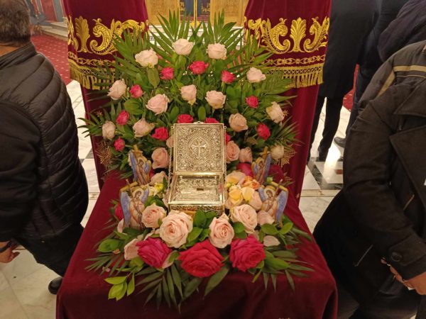 Πριν τον Εσπερινό προηγήθηκε υποδοχή Ιερού Λειψάνου της Αγίας το οποίο κομίστηκε εκ της Ιεράς και ιστορικής Μονής Αγίου Νικολάου Καλτεζών Μαντινείας.