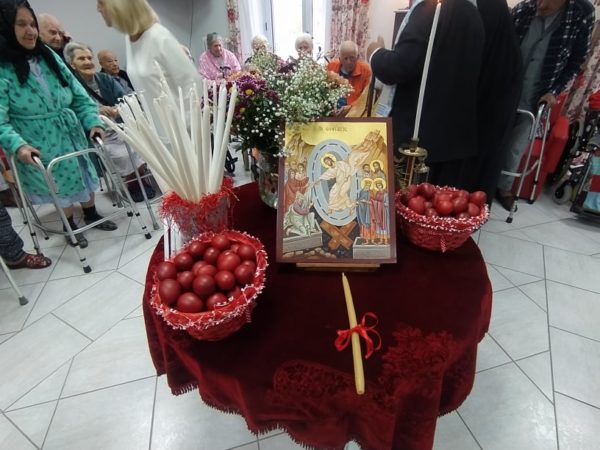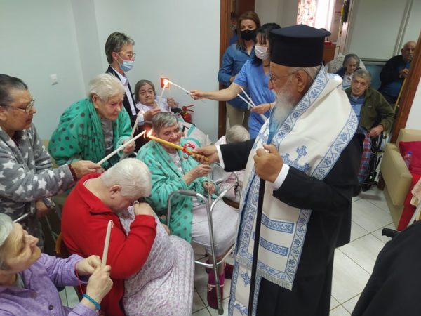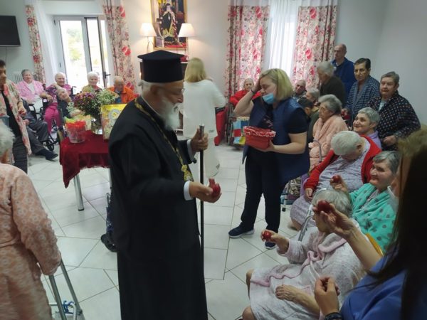Νωρίτερα το απόγευμα, ο Σεβασμιώτατος τέλεσε την Αναστάσιμη Ακολουθία στο Δεκάζειο Εκκλησιαστικό Γηροκομείο μαζί με τον φιλοξενούμενο στο Ίδρυμα Σεβασμιώτατο Μητροπολίτη Νεαπόλεως του Πατριαρχείου Ιεροσολύμων κ. Αμβρόσιο. Δόθηκε έτσι η ευκαιρία στους γέροντες να μετάσχουν στην χαρά της Αναστάσεως.