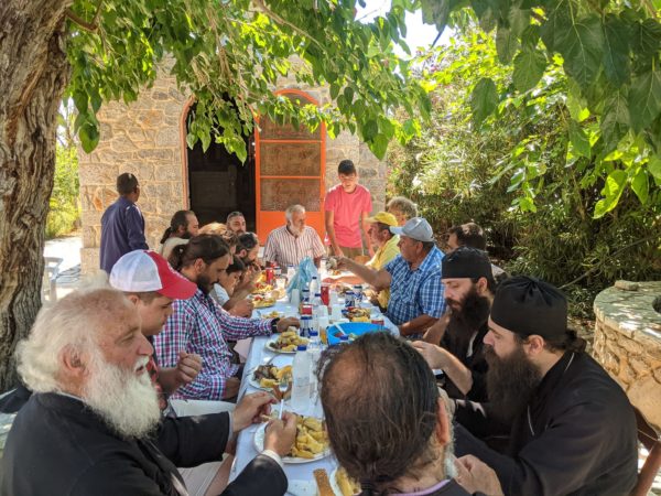 Μετά τη συγκομιδή της πατάτας ακολούθησε γεύμα στον περίβολο της μικρής Εκκλησίας, που υπάρχει στο κτήμα.