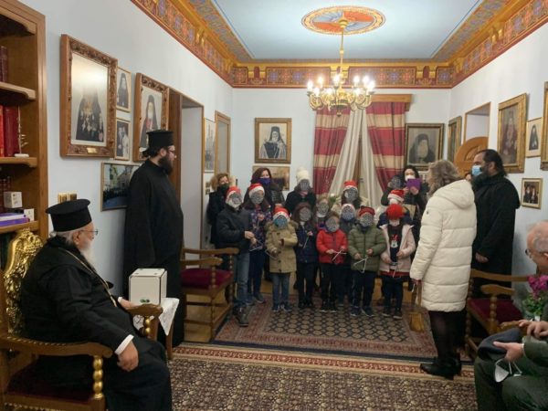 Μέ χαρά ἐδέχθη τήν Παρασκευή 24 Δεκεμβρίου 2021, ὁ Σεβασμιώτατος Μητροπολίτης Μαντινείας καί Κυνουρίας κ. Ἀλέξανδρος, στό γραφεῖο του, στό Ἐπισκοπικό Μέγαρο τούς νέους καί τίς νέες τῆς Τριπόλεως, ὃπου ἔψαλαν τά Χριστουγεννιάτικα Κάλαντα.