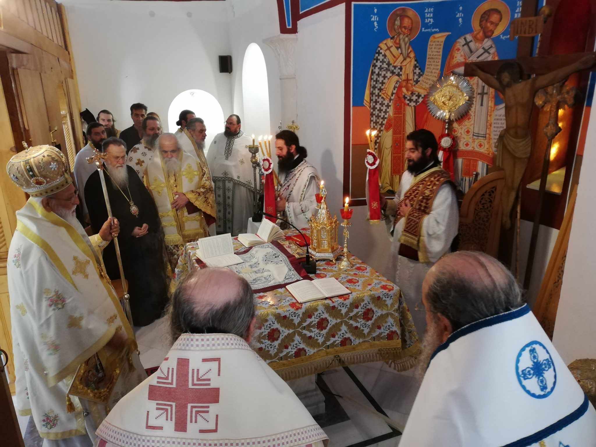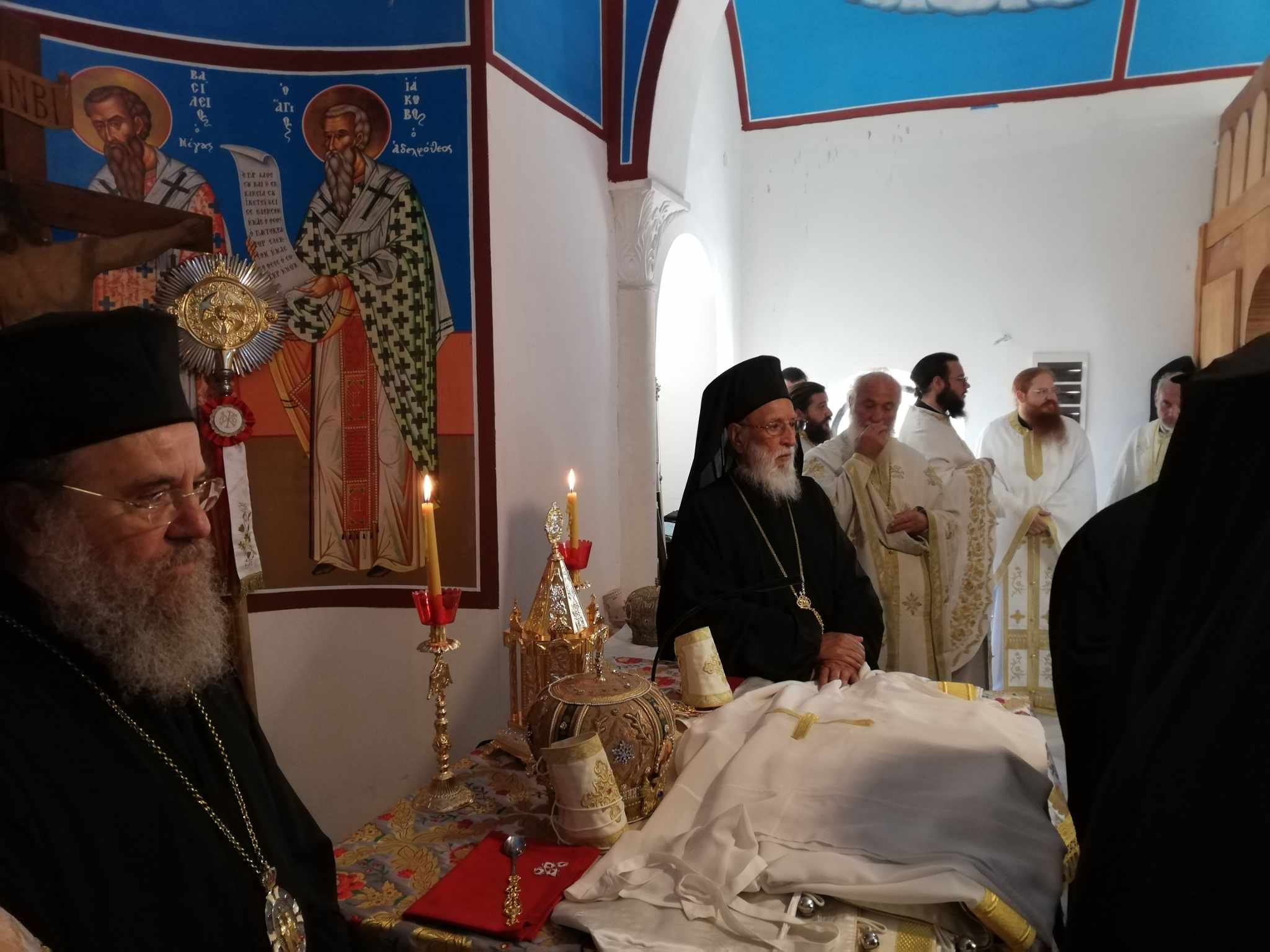 Συμπροσευχόμενοι στο ιερό Βήμα παρέστησαν ο Μητροπολίτης Κορίνθου κ. Διονύσιος και ο Θεοφιλέστατος Επίσκοπος Τεγέας κ. Θεόκλητος ο οποίος νωρίτερα τέλεσε την Θεία Λειτουργία στον πανηγυρίζοντα Ιερό Ναό Αγίου Αλεξάνδρου Κάτω Ασέας.