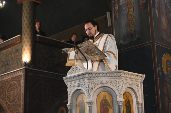 Κατά το Κοινωνικό, ο Σεβασμιώτατος κ. Επιφάνιος κήρυξε τον θείο λόγο, επισημαίνοντας ότι η Θεία Λειτουργία αποτελεί πάντοτε μια πασχάλια διάβαση, μια πνευματική πορεία από τον υλικό κόσμο προς την κοινωνία με τον Θεό. Τόνισε ότι ο ιερέας διακονεί ως «μέσος ουρανού και γης», συνδέοντας τους πιστούς με το μυστήριο της σωτηρίας. Αυτή η ιερή αποστολή, όπως υπογράμμισε, αποτυπώθηκε έμπρακτα στη ζωή του μακαριστού π. Ιουστίνου, του οποίου σήμερα τελέστηκε το 40ήμερο μνημόσυνο.