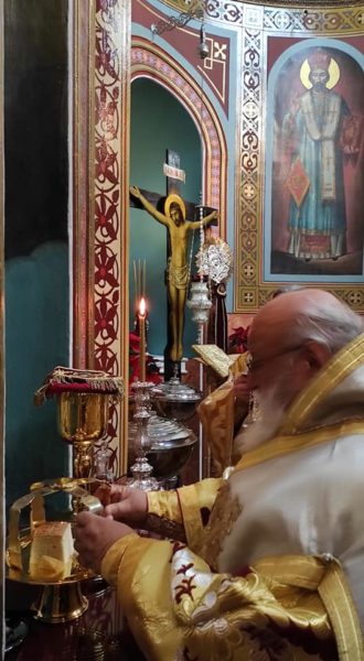Ο Σεβασμιώτατος κατά τη Απόλυσιν ευχήθηκε στους πιστούς υγεία, το πολυτιμότατο αυτό αγαθό, που έχει ανάγκη ο κόσμος αυτές τις δύσκολες στιγμές με την ευλογία του Γεννηθέντος Χριστού, τον οποίο πρέπει να επανενθρονίσουμε όλοι στις καρδιές μας.