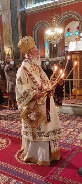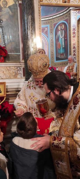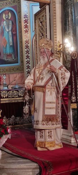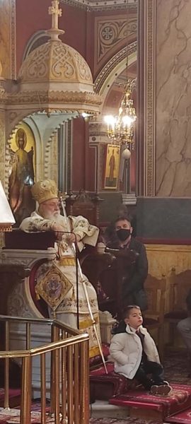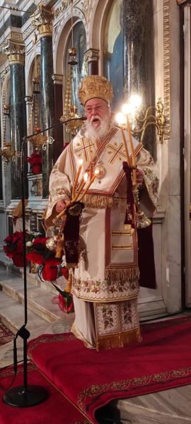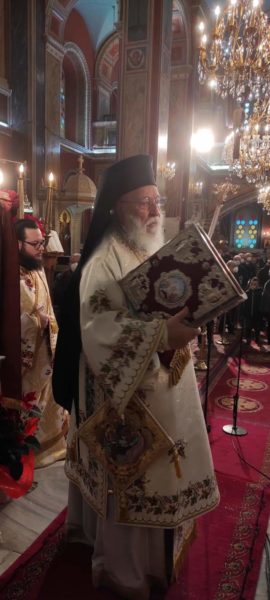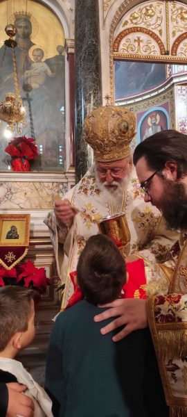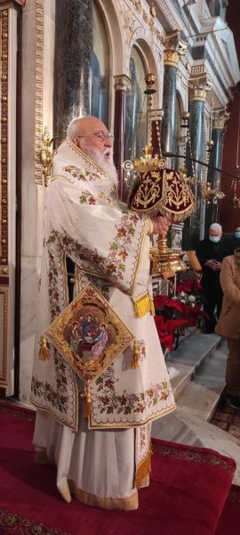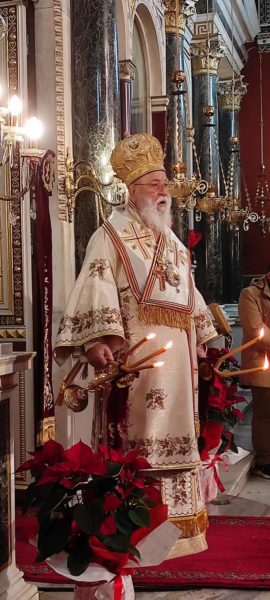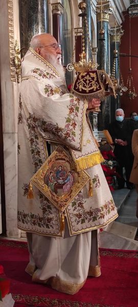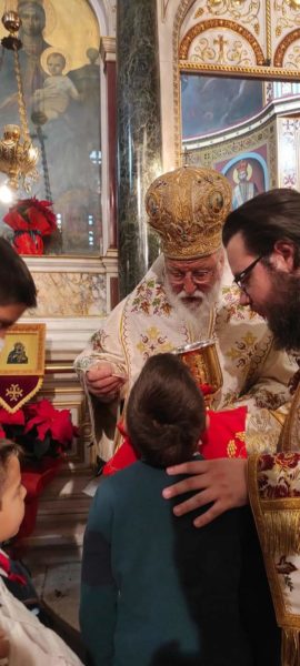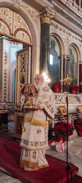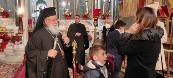 Ο Σεβασμιώτατος κατά τη Απόλυση ευχήθηκε στους πιστούς υγεία, το πολυτιμότατο αυτό αγαθό, που έχει ανάγκη ο κόσμος αυτές τις δύσκολες στιγμές με την ευλογία του Γεννηθέντος Χριστού.