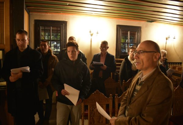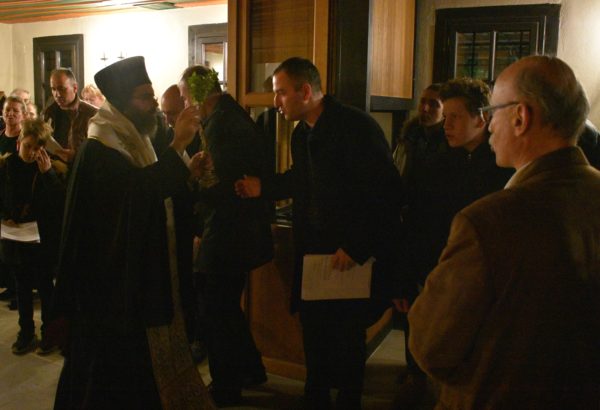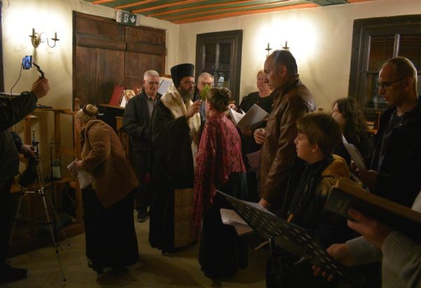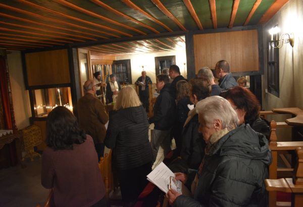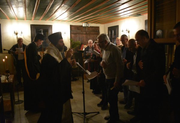 Επακολούθησε, στον ίδιο Ιερό Ναό, βραδινή θεία Λειτουργία, κατά την οποία έψαλε για πρώτη φορά, εν χορώ, το σύνολο των σπουδαστών της Σχολής.