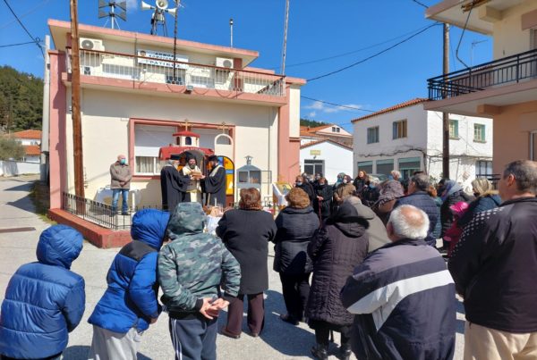 Ο Μητροπολίτης Μαρωνείας και Κομοτηνής κ. Παντελεήμων μετέβη σήμερα Σάββατο, ημέρα μνήμης των μαρτύρων Χρυσάνθου και Δαρείας της Αθηναίας, στο χωριό Γρατινή, γενέτειρα του Μακαριστού Αρχιεπισκόπου Αθηνών Χρυσάνθου Φιλιππίδη, και τέλεσε την καθιερωμένη αρτοκλασία στο παρεκκλήσι του Αγίου Χρυσάνθου.