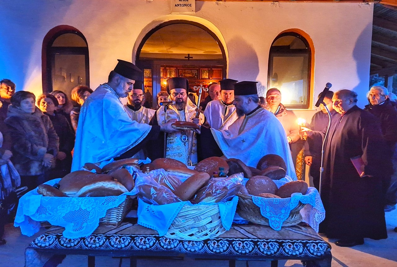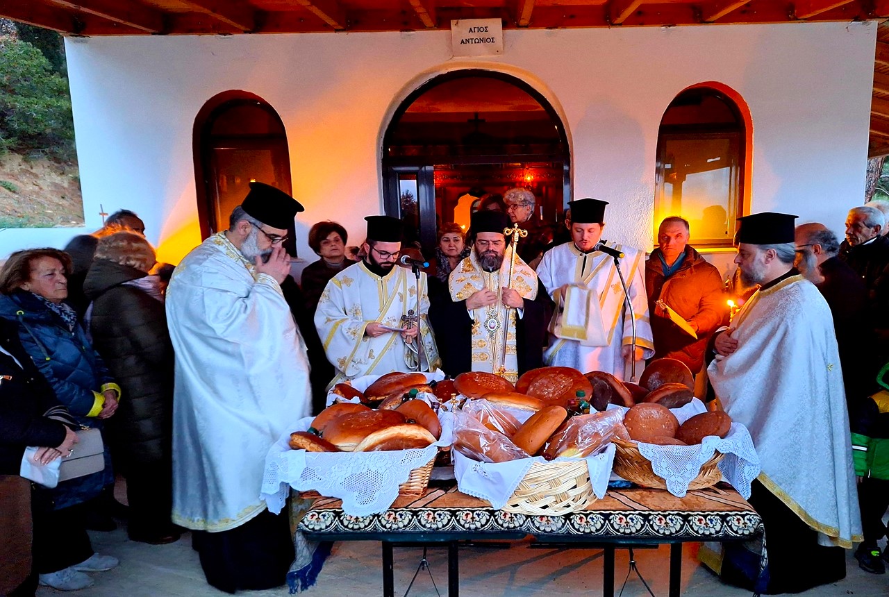 Στον λόγο του ο Σεβασμιώτατος αναφέρθηκε στον ασκητικό και θαυμαστό βίο του εορταζομένου Αγίου και «καθηγητή της ερήμου» όπως τον κατέγραψε ο Μέγας Αθανάσιος, περιγράφει τις τρομερές δοκιμασίες που υπέστη. Ο Αντώνιος δεν πάλεψε μόνο με την πείνα ή την μοναξιά, αλλά και με τους «δαίμονες» του νού. Η δύναμη της προσευχής του όμως και η ακλόνητη πίστη του τον κατέστησαν νικητή, μετατρέποντας την έρημο σε μία «πνευματική πολιτεία».