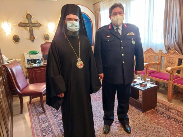 Ο υπουργός Προστασίας του Πολίτη κ. Παναγιώτης Θεοδωρικάκος επισκέφθηκε τον Σεβασμιώτατο Μητροπολίτη Μαρωνείας και Κομοτηνής στα Γραφεία της Ιεράς Μητρόπολης, εν όψει της έναρξης των μαθημάτων των Πρωτοετών της νεοϊδρυθείσας Ομάδας Προστασίας Πανεπιστημιακών Ιδρυμάτων (Ο.Π.Π.Ι.) στη Σχολή Αστυφυλάκων Ελληνικής Αστυνομίας Κομοτηνής, την Δευτέρα, 17 Ιανουαρίου 2022.