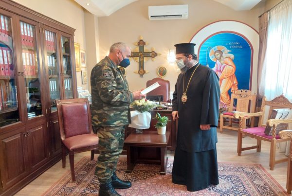 Ο Σεβασμιώτατος Μητροπολίτης συνεχάρη τον νέο Διοικητή του Δ΄ Σώματος Στρατού για την ανάληψη των νέων υψηλών καθηκόντων του, ευχήθηκε την παρά Θεού ενίσχυση και ευλογία και επισήμανε ότι η Εκκλησία δέεται πάντοτε υπέρ ευοδώσεως και ενισχύσεως του φιλοχρίστου Στρατού της Πατρίδος μας.