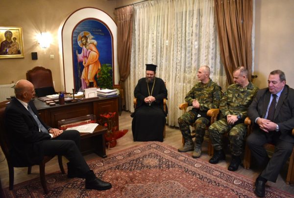 Ο Υπουργός Εθνικής Άμυνας κ. Νίκος Δένδιας, συνοδευόμενος από τον Αρχηγό Γ.Ε.Σ. Άντιστράτηγο Γεώργιο Κωστίδη και τον Διοικητή της Α.Σ.ΔΙ.Θ. Αντιστράτηγο Παναγιώτη Καβιδόπουλο. επισκέφθηκε σήμερα. Παρασκευή 13 Φεβρουαρίου 2026, τον Σεβασμιώτατο Μητροπολίτη Μαρωνείας και Κομοτηνής κ. Παντελεήμονα στα Γραφεία της Ιεράς Μητροπόλεως.