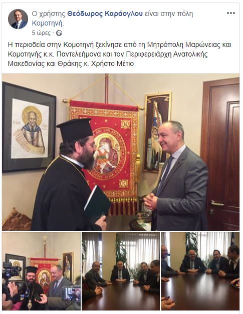 Το πρωί της Πέμπτης, 6ης Φεβρουαρίου 2020, ο Υπουργός Μακεδονίας Θράκης κ. Θεόδωρος Καράογλου ευρισκόμενος στη Θράκη, επεσκέφθη τον Σεβασμιώτατο Μητροπολίτη Μαρωνείας και Κομοτηνής κ. Παντελεήμονα στα Γραφεία της Ιεράς Μητροπόλεως.