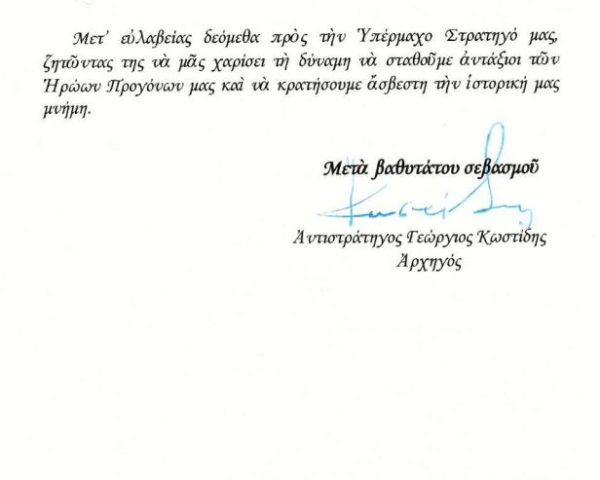Παρακάτω αυτούσια η επιστολή του Αρχηγού: