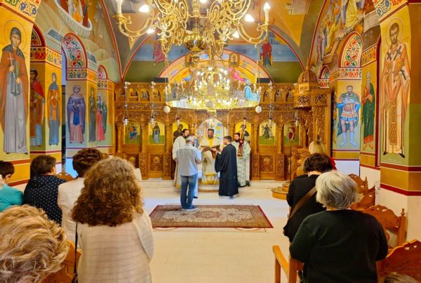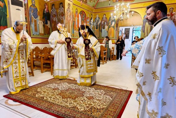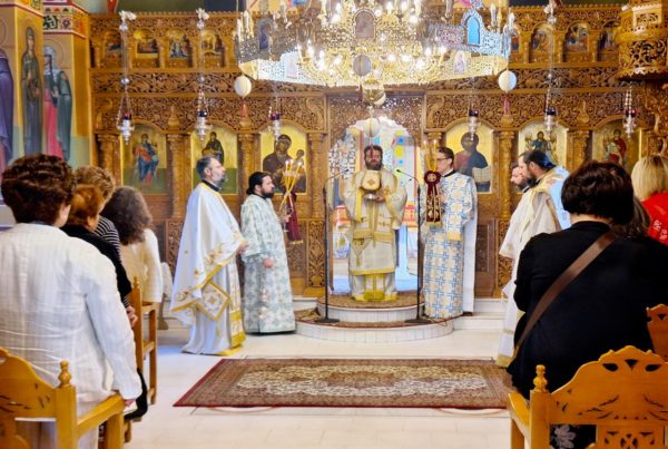 Τέλος επικαλέστηκε τις πρεσβείες του Αγίου διά την κατά Θεόν προκοπήν όλων.