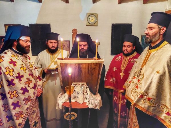 Παραμονή της εορτής ο Σεβασμιώτατος χοροστάτησε κατά την Ακολουθία του πανηγυρικού Εσπερινού στο εορτάζον ομώνυμο Ιερό Παρεκκλήσιο Ασωμάτων.